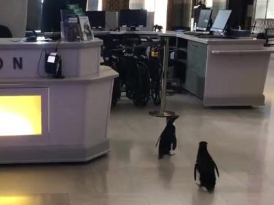 美国芝加哥的谢德水族馆跳岩企鹅夫妇大摇大摆到处逛 超开心情景萌翻网民(神秘的地...