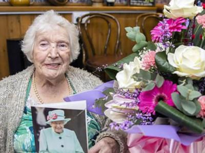 英国105岁女寿星Ellen Matthews认为如果想活得久 必须得跟上时代(© 照片 : N...
