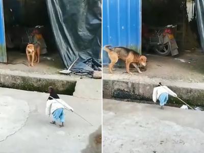 抖音影片网络疯传:野鸡大哥手持长棍走来 守门黄狗赶紧让开鞠躬(神秘的地球uux.cn...