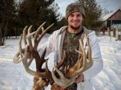 美国威斯康辛州男子拾获超巨型鹿王犄角