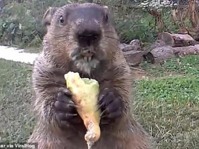 美国土拨鼠多次闯入菜园偷食物 还带女友