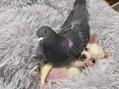 美国纽约州罗切斯特市动物养殖场鸽子和吉娃娃的神仙友谊感动无数网友(© 照片...