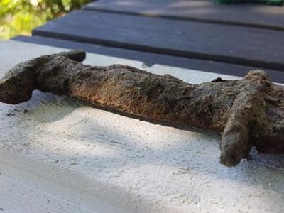 苏格兰居民将他在其父亲车库中发现的中世纪宝剑拍卖后而发财(© 照片 : Twitt...