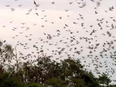 澳洲昆士兰省英厄姆镇大量蝙蝠乱飞 犹如