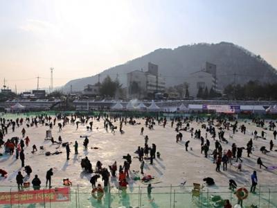 韩国江原道华川郡举行冰雪国家华川山鳟鱼