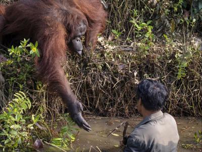 误以为护林员困水潭 印尼婆罗州红毛猩猩伸出援手(Image credits: Anil Prabhakar)...