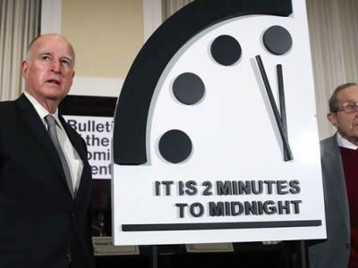 指示核灾难威胁的末日时钟象征性时针又向前拨动了20秒 现时间为23:58:20(© A...