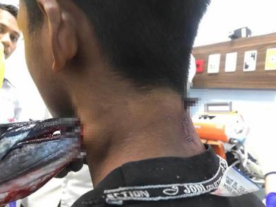 印尼国中生在布顿岛钓鱼时惨遭圆尾颌针鱼(Needlefish)刺穿脖子(神秘的地球uux.cn报...