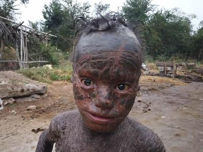 印度奥里萨邦10岁男孩贾格纳Jagannath因患有罕见“板层状鱼鳞病”而被称为“蛇”(...