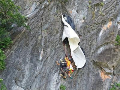 奥地利定点跳伞运动员Johannes Grasser在泰国博他仑府悬崖跳伞时卡峭壁(神秘的地球...
