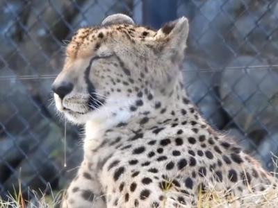 日本广岛市安佐动物园一只猎豹打盹竟然睡