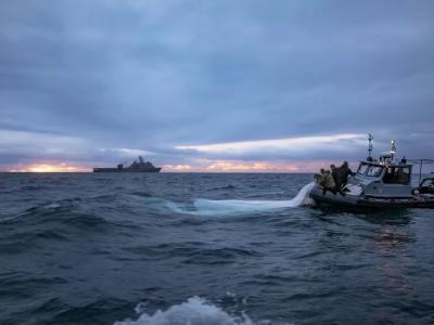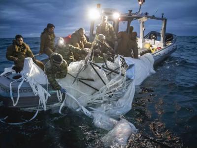 2023年2月5日,搜救人员在距离南卡罗来纳州海岸约6英里(10公里)的海面上打捞出一个...