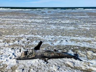 美国麻州丹尼斯海滩有条鲨鱼被冰封在沙滩上(@capeimagesbyamie/Amie Medeiros)(神...