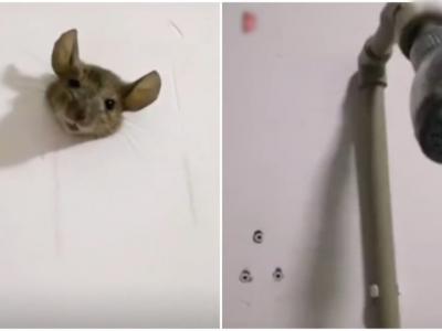 四川泸州高中宿舍洗手间内老鼠因身形肥胖被卡墙洞 网民:有点可爱(神秘的地球uux....