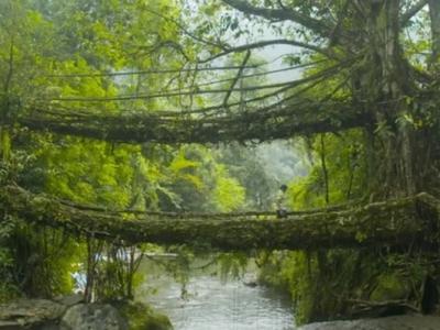 印度梅加拉亚邦有一座树桥 树根互缠使用