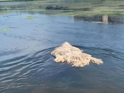 河里有堆拖把布在漂?立陶宛女子养了一只