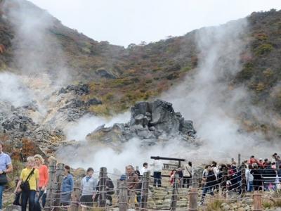 日本神奈川县箱根山因火山活动引发的地震加剧封闭近半年 观光胜地大涌谷重开温泉黑...