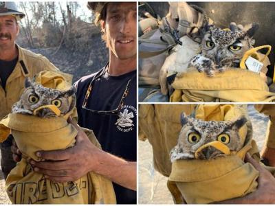 美国加州山火猫头鹰无处可逃 暖心消防员