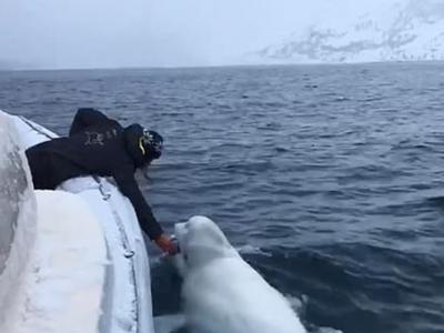 白鲸开心与南非海洋考察船船员在大海大玩抛接橄榄球游戏视频:白鲸开心与南非海洋考...