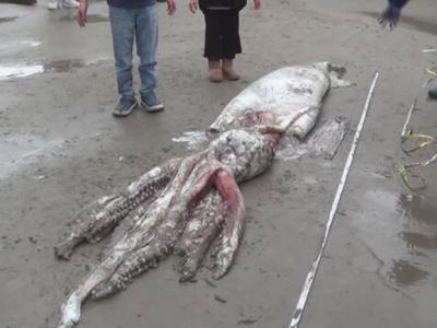 日本鸟取县岩美町海边出现1只身长超过3公尺的大王乌贼尸体(神秘的地球uux.cn)据E...