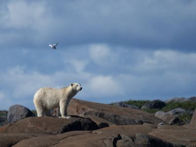 2022 年 8 月 4 日,在加拿大丘吉尔附近看到一只北极熊,这是一种因气候变化而面临...