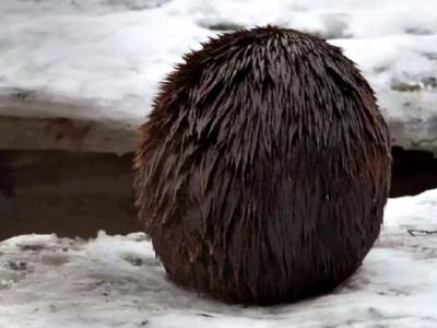 摄影师在雪地发现一个毛茸茸的棕色球体