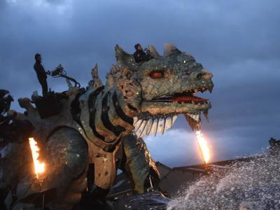 巨大机器海龙在法国北部海边城市加来现身