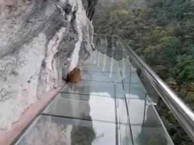 浙江杭州淳安县一头野猪误闯石林玻璃栈道吓得腿软走不动(神秘的地球uux.cn报道)据...
