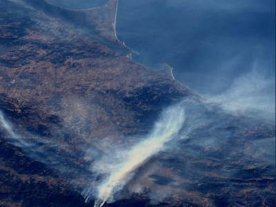 美国宇航员安德鲁·摩根从国际空间站拍摄加州大火(© 照片: twitter/@AstroDr...