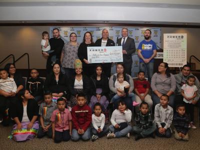 奇普瓦(后排右三)与家人一起领奖。奇普瓦(右)称与妻子(左)会继续工作。(神秘...