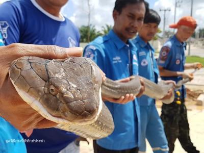 泰国喀比府7名救援人员花1个多小时抓获巨型眼镜王蛇(มูลน...