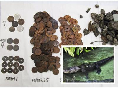 日本名古屋东山动植物园鳄鱼误把钱币当石头吞食 尸藏330枚硬币(神秘的地球uux.cn报...