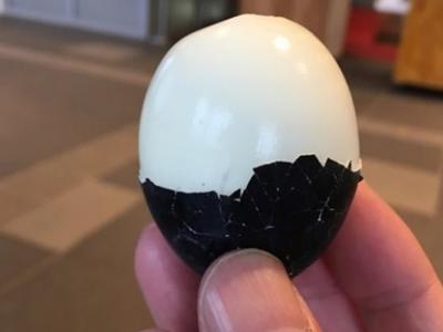 大涌谷名物黑鸡蛋已重新发售。蛋壳呈灰黑色。黑鸡蛋以大涌谷天然温泉煮熟。(神秘的...