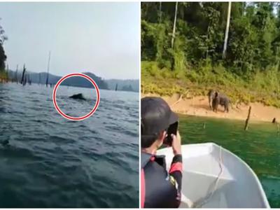 马来西亚肯逸湖大象游泳 远看犹如尼斯湖