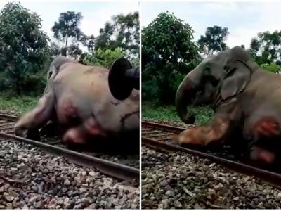 印度西孟加拉邦大象穿越铁轨时被火车撞至