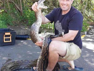 南非德本一户人家刚搬进新家就发现前院一棵树上有条巨蟒(Picture: Nick Evans)(神...