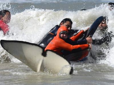 阿根廷海滩7条杀人鲸搁浅 6条成功获救