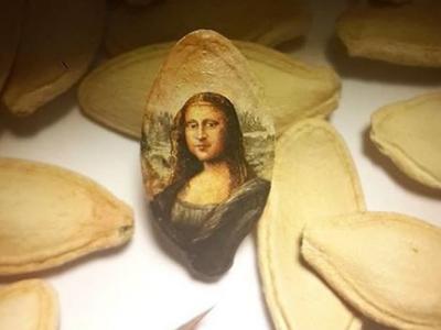 卡莱在南瓜种子上画名画《蒙娜丽莎》。卡莱在鱼骨上画出土耳其国旗。(神秘的地球u...