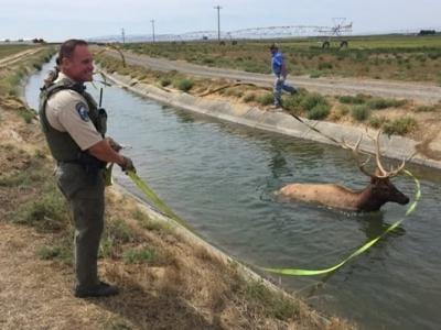 美国华盛顿州富兰克林县麋鹿不慎掉进水渠 救援人员合力营救成功(神秘的地球uux.cn...