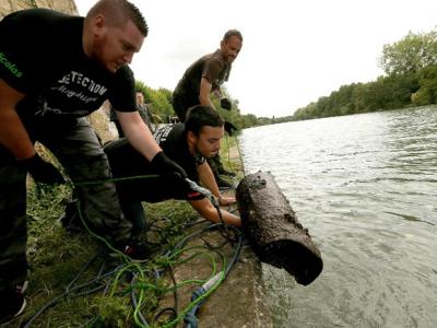 法国历史爱好者用磁石河底寻宝 顺便清理