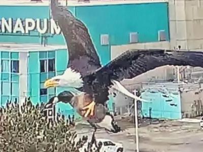 美国白头鹰抓着加拿大鹅飞翔的视频在Fac