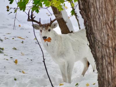 美国纽约州伊利县西塞内卡罕有发现一只全身白色的白尾鹿(神秘的地球uux.cn)据东网...