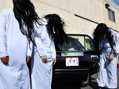 驾驶猛鬼的士的司机都要接受特训,研习扮鬼演技。车门上贴有灵感(意为超自然现象)...