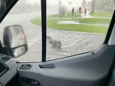 美国佛罗里达州皮内拉斯县2.4米长短吻鳄惊现马路 在雨中行走异常吓人(神秘的地球u...