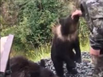 俄罗斯男子喝醉后伸手想逗野生小熊 手被