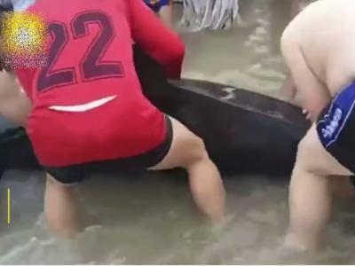 广东阳江海滩3米长海豚搁浅 游客救生员合