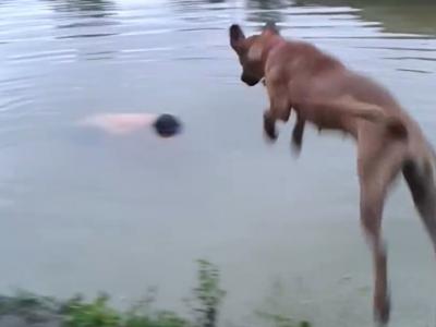 主人跳湖假装溺水 巴西小狗Princesa毅然