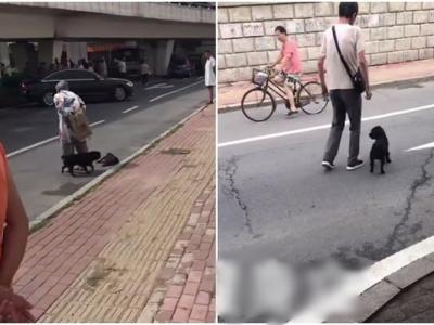吉林船营区怀孕母狗被车撞死 同伴守护尸体不肯离开(神秘的地球uux.cn报道)据东网...