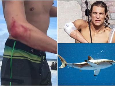 美国职业滑浪选手手肘遭鲨鱼咬 不去医院