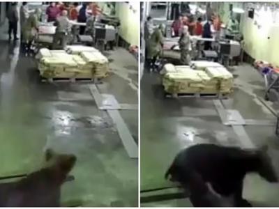 一只熊闯俄罗斯远东库页岛鱼类加工厂觅食 见工人急逃跑(神秘的地球uux.cn报道)据...